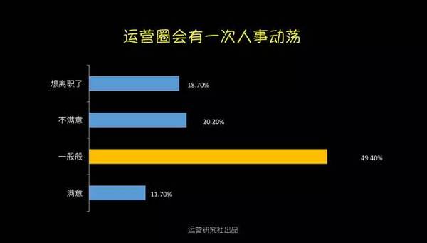 1、運(yùn)營(yíng)從業(yè)者的男女比例? 運(yùn)營(yíng)從業(yè)者的在性別占比上,15年仍是男生略勝女生,今年則是被完勝10個(gè)百分點(diǎn)。無(wú)論是在哪家公司做運(yùn)營(yíng),都能夠顯著的感覺(jué)的陰盛陽(yáng)衰。不知道大家是否跟我一樣,尋思著男同胞們都上哪工作了。 不外話說(shuō)歸來(lái),嘴上在嘀咕,作為男生心里仍是美著呢,究竟身邊美女圍著轉(zhuǎn),加班搬磚也帶勁。 2、運(yùn)營(yíng)從業(yè)者的春秋組成? 在16年的運(yùn)營(yíng)從業(yè)者中有64.2%是90后,工作十年以上的老司機(jī)偏少。項(xiàng)目落地靠90后,掌舵還得靠85前,真正享有運(yùn)營(yíng)決議計(jì)劃?rùn)?quán)的是30歲以上的運(yùn)營(yíng)白叟。他們?cè)诨ヂ?lián)網(wǎng)剛起步階段就開始在運(yùn)營(yíng)領(lǐng)域摸爬滾打,固然人數(shù)只占了6.6%卻把握了80%的運(yùn)營(yíng)資源。 3、運(yùn)營(yíng)從業(yè)者的工作方向? 運(yùn)營(yíng)是個(gè)框什么都能夠往里裝,每次朋友聚會(huì)被問(wèn)到在做什么的時(shí)候,你是不是也會(huì)緊張,然后腦子里快速閃過(guò)最近做的事情,試圖給自己做工作下個(gè)詳細(xì)的定義,可終極仍是有49.5%的運(yùn)營(yíng)無(wú)法改變“實(shí)在自己什么都做”的真相。 不外從16年運(yùn)營(yíng)人生存現(xiàn)狀調(diào)查的結(jié)果中我看到了一個(gè)好的趨勢(shì):運(yùn)營(yíng)分工開始明細(xì)。內(nèi)容和用戶運(yùn)營(yíng)的相關(guān)從業(yè)者比例晉升到了26%,新媒體運(yùn)營(yíng)的比例在下降,越來(lái)越多的企業(yè)開始意識(shí)到對(duì)產(chǎn)品本身運(yùn)營(yíng)的價(jià)值高過(guò)在新媒體渠道的盲目跟進(jìn)。 4、運(yùn)營(yíng)從業(yè)者的工作年限分布? 據(jù)某著名招聘網(wǎng)站數(shù)據(jù)顯示,互聯(lián)網(wǎng)的整體從業(yè)者中工作經(jīng)驗(yàn)在3年以下的為37.46%,而單從運(yùn)營(yíng)崗位分析,0-3歲的運(yùn)營(yíng)卻占到了91.5%,比擬于技術(shù)、產(chǎn)品、設(shè)計(jì),運(yùn)營(yíng)作為互聯(lián)網(wǎng)的新興崗位還有很長(zhǎng)的路要走。 另外,今年1-3歲運(yùn)營(yíng)的占比超過(guò)了0-1歲運(yùn)營(yíng),看來(lái)仍是有蠻多人選擇在運(yùn)營(yíng)這條路上堅(jiān)持的。 5、運(yùn)營(yíng)從業(yè)者的薪資收入? 運(yùn)營(yíng)也算是拼資歷了,薪資分布和從業(yè)年限的分布在整體上一致。受工作年限的影響,79.8%的人工資不超過(guò)10K,只有少部門運(yùn)營(yíng)突破經(jīng)驗(yàn)限制拿到了10K以上。 今年互聯(lián)網(wǎng)行業(yè)整體均勻薪資晉升了,但是1-3年運(yùn)營(yíng)從業(yè)者的薪資水平反倒泛起了下降,相信不少人又該(被)拖后腿了。 6、你運(yùn)營(yíng)的產(chǎn)品用戶規(guī)模? 受資本寒冬的影響,今年未上線的產(chǎn)品占比從去年的27.6%下降到了17.8%,用戶規(guī)模在10萬(wàn)-100萬(wàn)的產(chǎn)品比例晉升了2個(gè)百分點(diǎn)。 對(duì)于互聯(lián)網(wǎng)創(chuàng)業(yè)來(lái)說(shuō)10萬(wàn)用戶規(guī)模是條坎,還有46.1%的產(chǎn)品在努力沖破這條生命線,往前推進(jìn)意味著融資加速,整體運(yùn)營(yíng)節(jié)奏也能夠上正軌。 7、你需要加班嘛? 超過(guò)81.4%的運(yùn)營(yíng)需要加班,更糟糕的是有11.7%的從業(yè)者根本就沒(méi)有周末。拼一點(diǎn)的創(chuàng)業(yè)公司正常的作息時(shí)間是“10-10-6”,也就是每周需要工作6天,周末碰到產(chǎn)品或者流動(dòng)上線基本上就是繼承加班了。 即使不在創(chuàng)業(yè)公司,有一些社區(qū)的運(yùn)營(yíng),周末除了需要更新內(nèi)容和首頁(yè)物料,碰到熱門事件還得出內(nèi)容做專題,工作節(jié)奏完全遇上了戰(zhàn)地記者。對(duì)嚴(yán)苛要求自己的運(yùn)營(yíng)來(lái)說(shuō),糊口即工作,工作即糊口,單身只身汪恨不得把家搬公司了。18.6%表示從不加班的運(yùn)營(yíng),不知道你們公司還招人嗎? 8、你在工作中最缺什么? 跟運(yùn)營(yíng)從業(yè)者中大部門是90后有關(guān),65.5%的運(yùn)營(yíng)都是工作狂,在他們眼里個(gè)人工作成就感比什么都重要。 另外一個(gè)比較讓長(zhǎng)輩們擔(dān)心的現(xiàn)象是:運(yùn)營(yíng)從業(yè)者把找另一半的優(yōu)先級(jí)放在掙錢、個(gè)人時(shí)間、旅游之后了。 9、你對(duì)現(xiàn)在的運(yùn)營(yíng)工作滿足嘛? 預(yù)計(jì)明年春季在運(yùn)營(yíng)圈會(huì)有一波大換血和動(dòng)蕩,超過(guò)88.3的運(yùn)營(yíng)表示對(duì)現(xiàn)在的工作無(wú)感,其中18.7%明確提出想離職。 無(wú)法學(xué)到更多東西、對(duì)新增不滿足、企業(yè)發(fā)展遠(yuǎn)景不佳,是互聯(lián)網(wǎng)運(yùn)營(yíng)人選擇跳槽的主要原因,各位老板們是時(shí)候在年底的時(shí)候給你想留著的人才加薪發(fā)年終獎(jiǎng)啦。 最后是今年新增的一項(xiàng)關(guān)于學(xué)習(xí)的調(diào)查,主要是出于私心想看看現(xiàn)在有多少人缺乏系統(tǒng)學(xué)習(xí)的機(jī)會(huì)。讓人值得興奮是不缺學(xué)習(xí)機(jī)會(huì)的運(yùn)營(yíng)占比想象中高出了3個(gè)百分點(diǎn),但是仍舊有超過(guò)90%的運(yùn)營(yíng)缺乏學(xué)習(xí)機(jī)會(huì),比擬于零散的微課有75.5%的運(yùn)營(yíng)開始熱衷于花更多的時(shí)間去系統(tǒng)的學(xué)習(xí)運(yùn)營