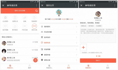 第2次轉(zhuǎn)型,聚份子將形式做得更輕,全部項(xiàng)目的中心業(yè)務(wù)環(huán)繞BP付費(fèi)投遞,做創(chuàng)投界的“分答”。出資人在渠道上自行定制發(fā)問報(bào)價(jià),創(chuàng)業(yè)者上載自個(gè)的BP,向心儀的出資人付費(fèi)發(fā)問,這么一方面假如出資人看到并不是太符合要求的項(xiàng)目也有有些的時(shí)刻補(bǔ)償,一起創(chuàng)業(yè)者也能夠經(jīng)過自動(dòng)投遞迅速取得出資反應(yīng)。別的感興趣的“圍觀大眾”還能夠挑選“偷聽”,低本錢學(xué)習(xí)出資人對項(xiàng)目的判別及看法。經(jīng)過這種方式,聚份子一個(gè)月內(nèi)就協(xié)助30多個(gè)項(xiàng)目迅速地找到意向的出資組織,最快的耗時(shí)不到10分鐘。并且在這30幾個(gè)項(xiàng)目中,很多的是對本來傳統(tǒng)項(xiàng)目進(jìn)行改造的二三線城市創(chuàng)業(yè)者,遍及現(xiàn)階段都有數(shù)百萬乃至千萬的流水,而這些項(xiàng)目是本來的投融資渠道效勞不到的。